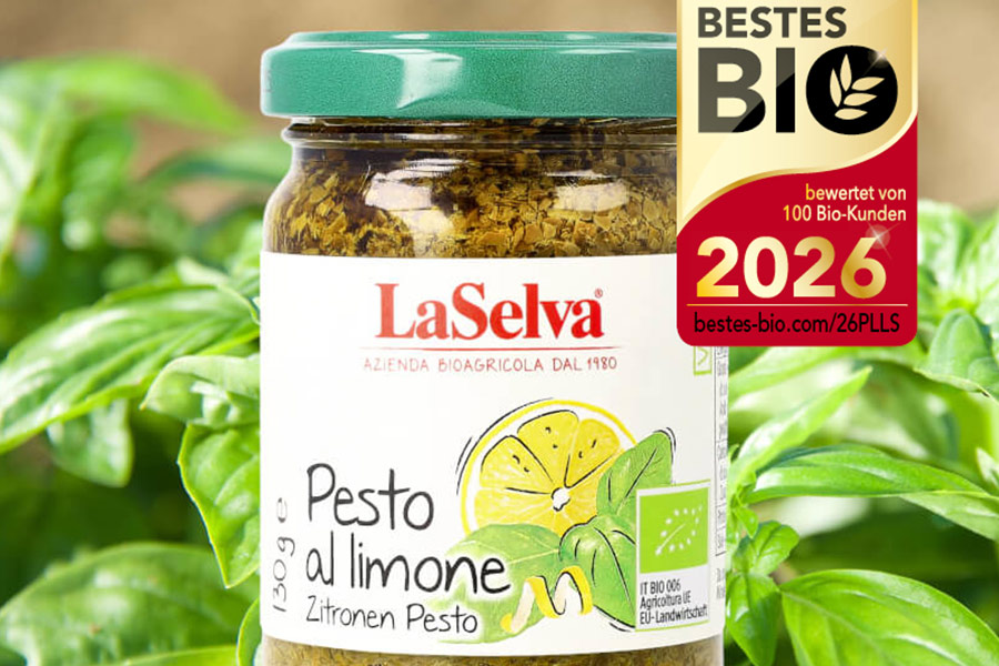 LaSelva steht mit ca. 250 authentischen, typisch mediterranen Spezialitäten für genussvolle, möglichst naturbelassenen Bio-Genuss aus eigener Herstellung und von italienischen Partnerbetrieben. Darunter sind u.a. Essig-Spezialitäten wie der Aceto Balsamico aus Modena, der durch seine aromatische, fruchtige Würze überzeugt. Zahlreiche Tomatenprodukte, Antipasti und Pesto-Spezialitäten sorgen für Vielfalt auf dem Tisch. Probieren Sie z. B. das neue Pesto al Limone aus würzigem Toskana-Basilikum und einem Hauch natürlicher, italienischer Zitrusfrucht - ausgezeichnet mit dem Bestes Bio 2026 Award.