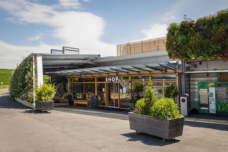 Ein Feinkost- und Schokoladenladen, wo man die 500 Schokoladen- und Pralinen-Spezialitäten, aber auch Feinkost vom Bio-Bauernhof und Wein vom eigenen Weinberg probieren und kaufen kann, runden das Unternehmen ab.